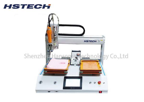 This equipment is a 4 axis single head automatic soldering machine, double Y platform, save the fixture feeding time, imporve the production efficiency. It's widely used in PCB soldering wire, charger plug,solering,connector plug,DC terminal,LED strip light soldering and other fields.